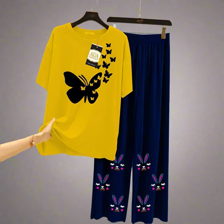 2 Pcs Women's Stitched Jersey Printed Sleepwear